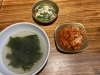 石焼タッカルビにはスープ・キムチ・小鉢がついてきて、大満足。