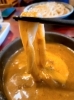 熱々のカレーつけ汁に絡め