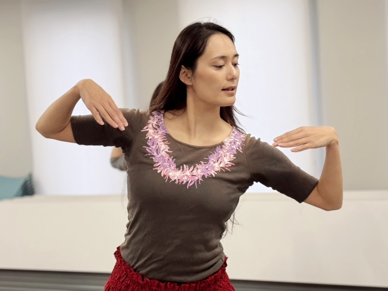 「ハワイの音楽がとても好きなので、音楽に合わせて踊っているだけで、とてもリフレッシュ出来る!」