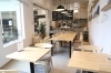 A.カフェ併設の店舗ということで、空間の取り方を工夫したり開放的で明るい内装にしています。